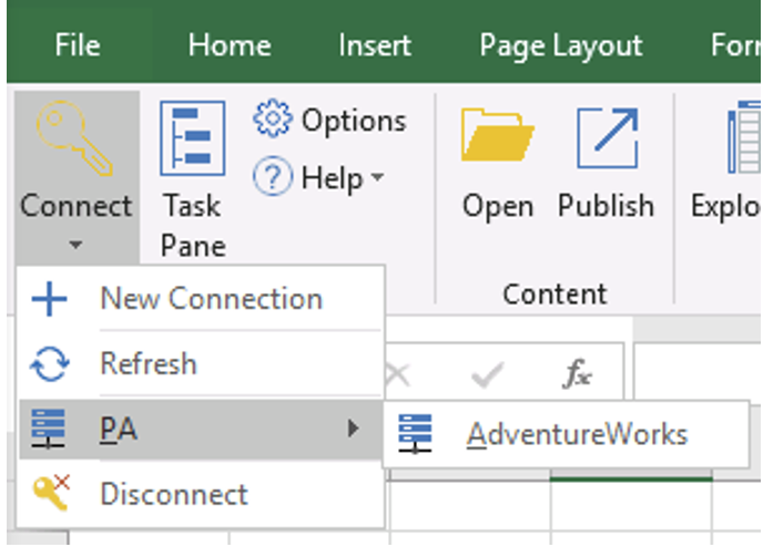Before you can begin building or interacting with reports in Planning Analytics for Excel (PAfE), you need to connect to your TM1 server. This connection enables PAfE to access your data models, cube views, and saved reports—just like Perspectives did.