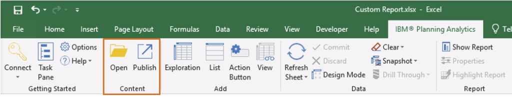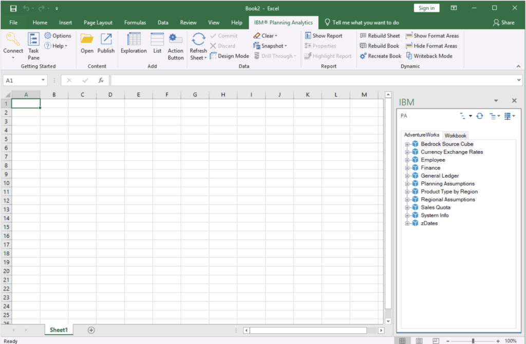 To connect, simply launch Excel and navigate to the IBM Planning Analytics tab on the ribbon.