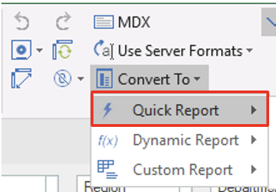 - Quick Reports = Fast, Excel-native reports with formatting and formulas