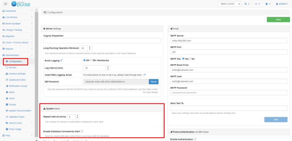 Enable Database Connectivity Alert: Send an email notification when there is an issue with the database