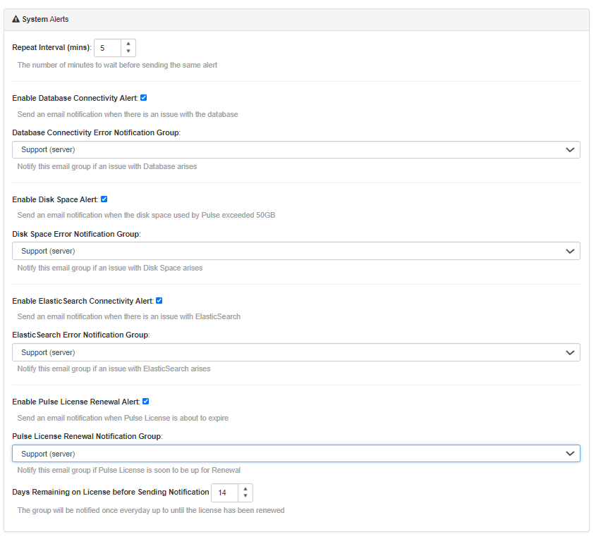 Pulse v6 introduced system alerts to get a notification when one component of Pulse is not working.