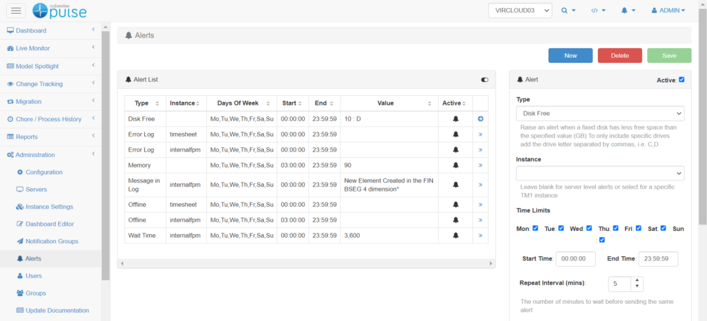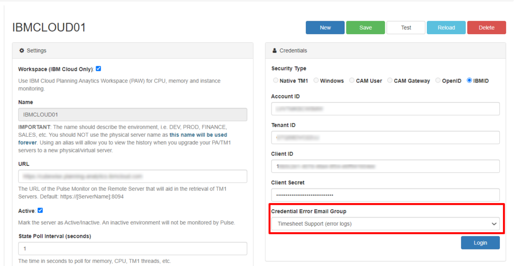 When Pulse connects to the IBM Cloud, there is one more System Alert that needs to be configured on the Environment page for each server: