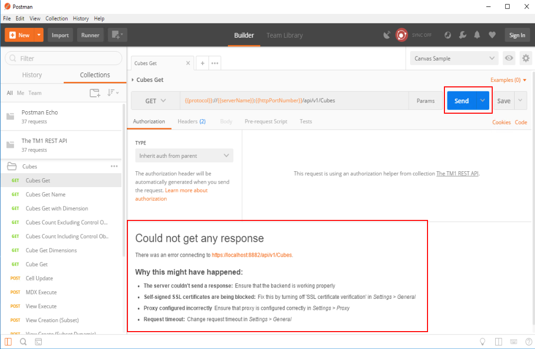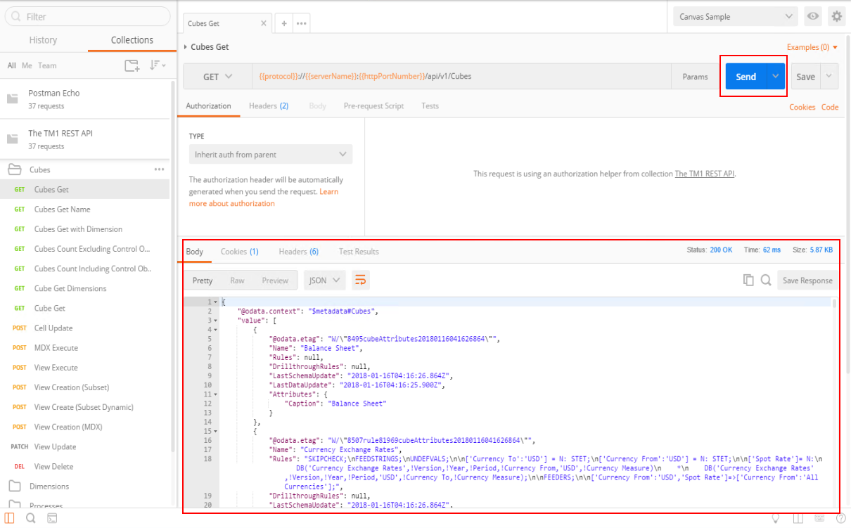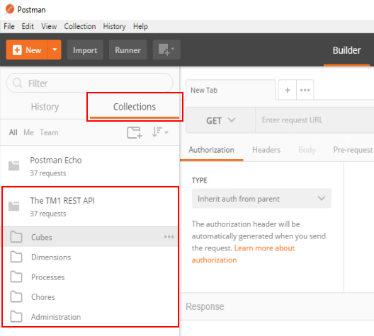 Once imported, you can click on the Collections tab where you should be able to see the TM1 REST API folders