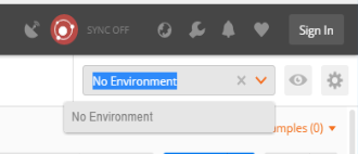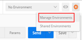 Instead of hard coding the protocol, server name and httpPortNumber we use variables defined in a Postman Environment. If the variables are red, it means that they are missing in the Environment variables list. In this example there is no Environment setup, on the top right you should see “No Environment“: