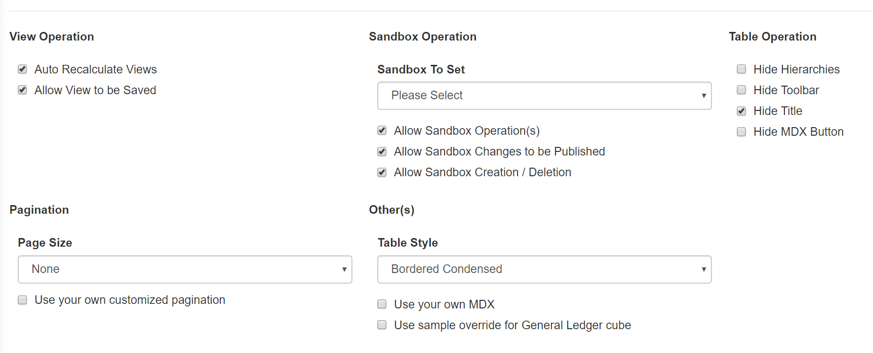 These options can be set by using the tm1-options parameter of the tm1-ui-cube-viewer directive. Motre information in the Help section of your application <Canvas Application URL>/#/help.