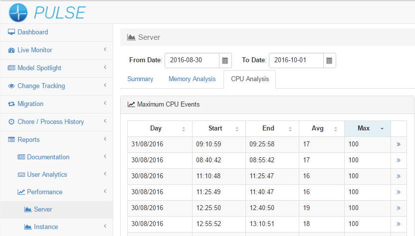 or you can use the server performance report to see all maximum CPU events during a timeframe: